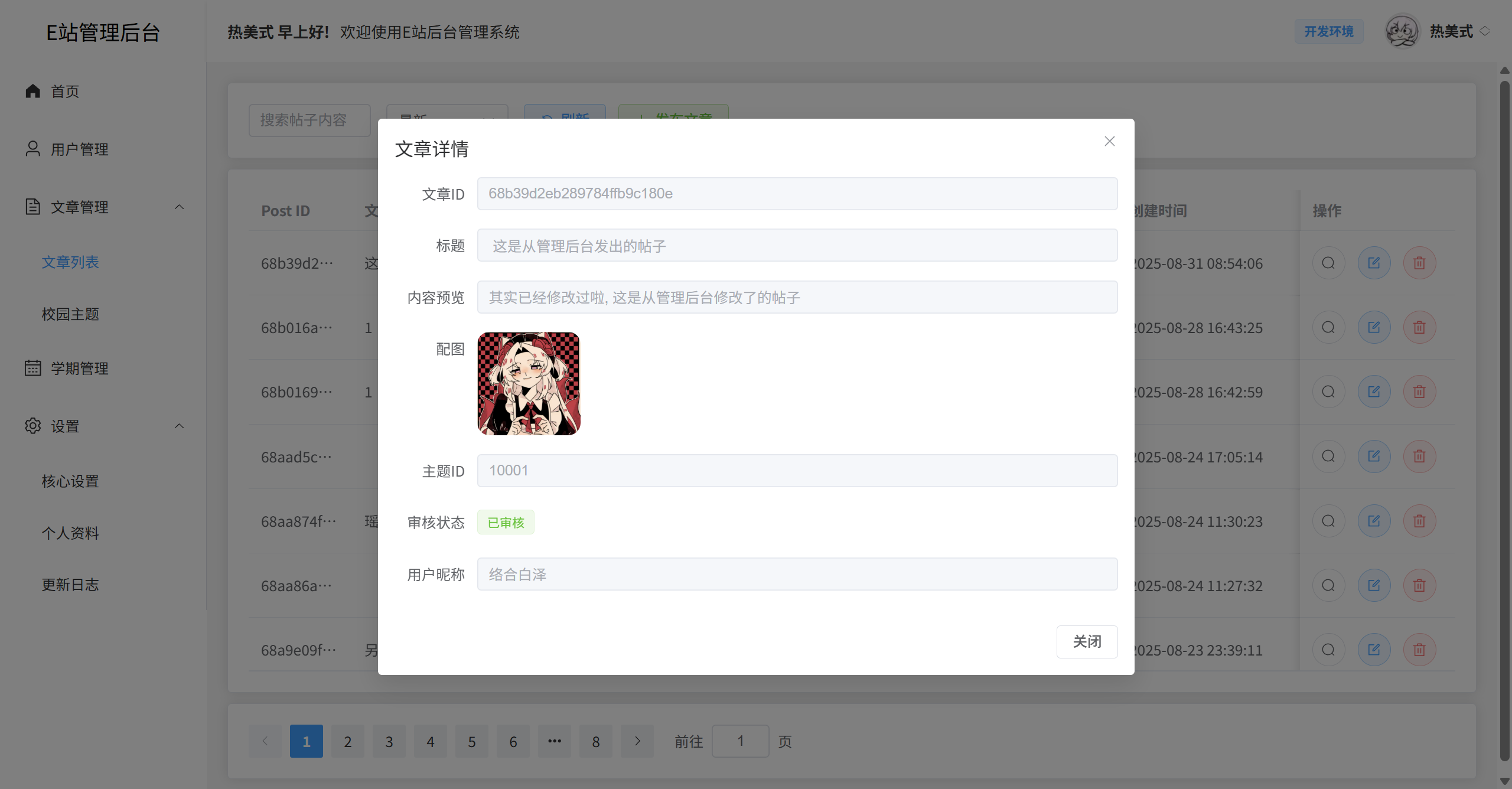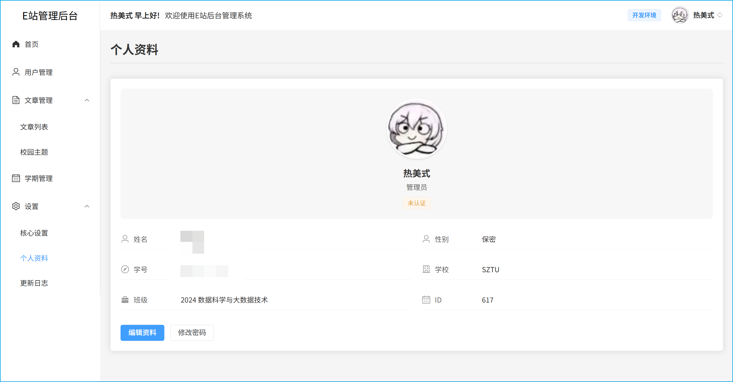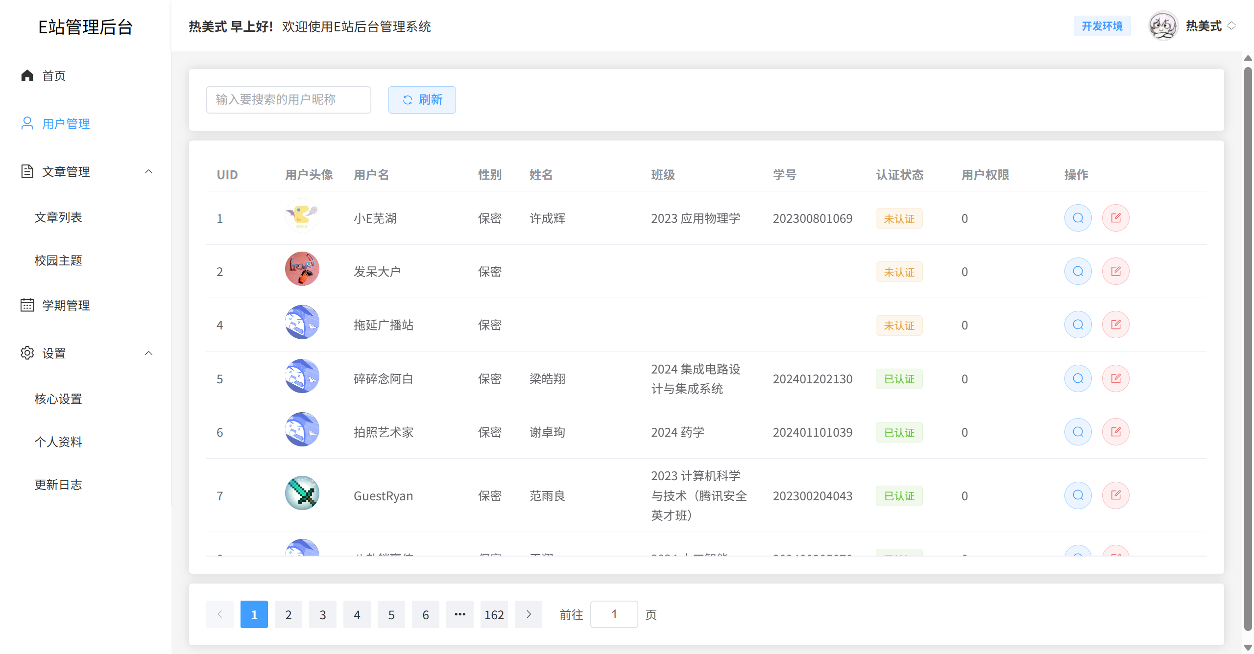这是为了校园 E 站项目, 制作的一个管理后台项目. 功能集成了用户管理, 文章管理 (文章列表和校园主题管理), 学期管理以及设置.