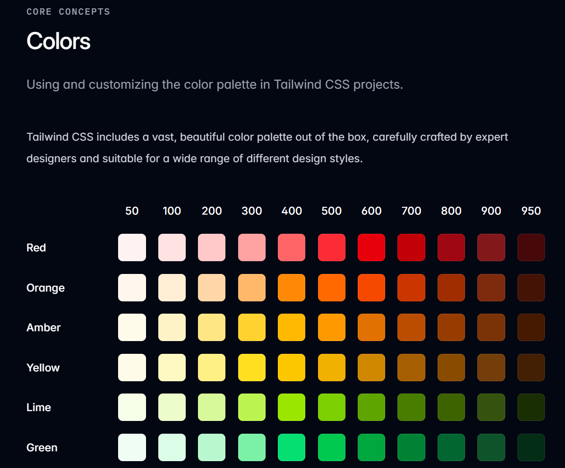 上面我们使用颜色,都是通过 color-number 的形式写的,这个 number 就是一个颜色的色值,可以看看官网的说法: